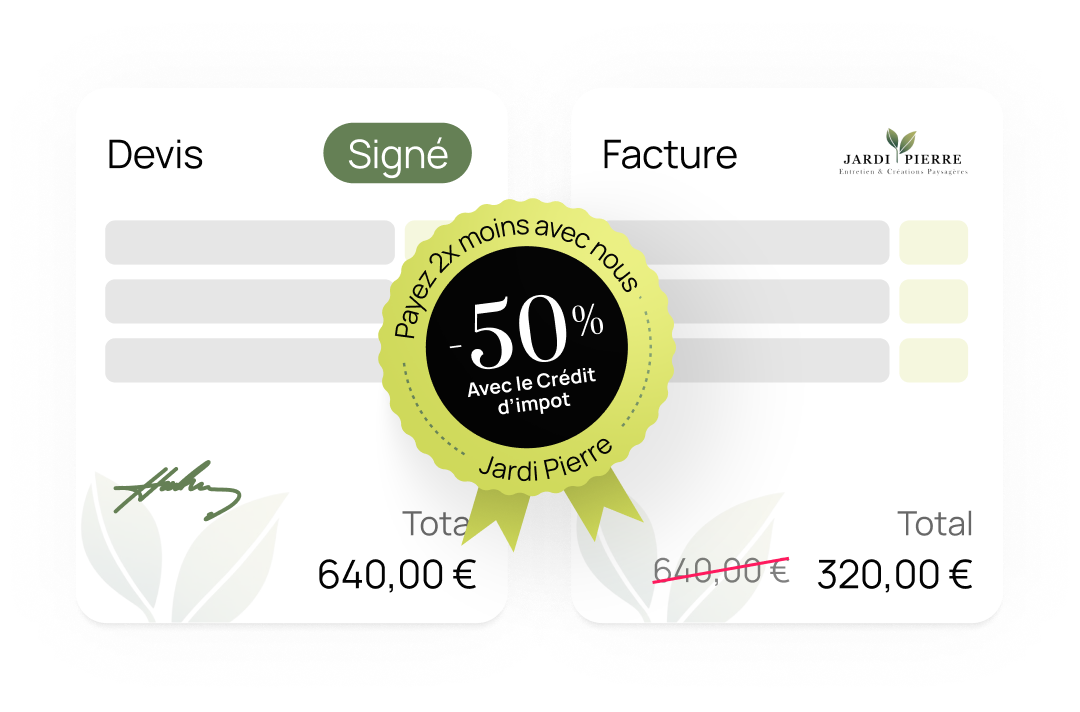 Tous nos services sont éligibles au crédit d’impôt avec avance immédiate vous permettant d’économiser 50% sur la facture finale.